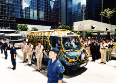 梁錦光路祭儀式在入境事務大樓外舉行。