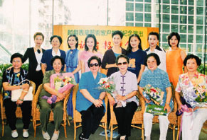內地越劇界的表演藝術家抵港,參加尹桂芳的紀念演出。(前排左起)畢春芳、高劍琳、戚雅仙、張桂鳳、范瑞娟、李金鳳六位老師,對尹桂芳大姐非常懷念。