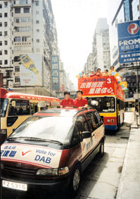 民建聯港島區立法會候選人進行花車巡遊活動。