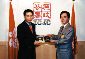 警視廳刑事局(刑事企劃課理事官)警視正太田誠向廉署署理執行處處長(私營機構)陳德成致送紀念牌,以表示謝意。