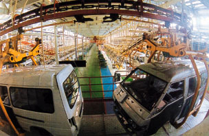 兩岸汽車最大合資企業——東南汽車總裝車間。