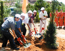 「同飲一江水,共建希望林——保護母親河東江碧水行動」六日在廣東省博羅縣東江河畔正式啟動。圖為香港社會團體代表在植樹。