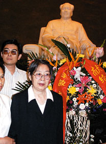 九月九日是毛澤東逝世廿四周年紀念日。圖為毛澤東與賀子珍所生的女兒李敏在兒子孔繼寧等人陪同下到毛主席紀念堂敬獻鮮花。
