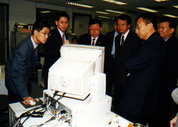 廣東省人民檢察院檢察長張學軍(左三)了解廉署如何利用先進電腦鑑證器材進行調查工作。站於張氏旁為廉政專員黎年。