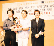 全港青少年網頁設計比賽小學組冠亞季軍分別是浸信會沙田圍呂明才小學的李凱文、港澳信義會小學上午校的范芽茜、高曉彤同學以及聖若瑟英文小學的簡志亨、黃偉華同學。初中組冠亞季軍由民政事務總署署長李麗娟頒發分別是,順德聯誼總會鄭裕彤中學的凌恩榮、鄭文浩、蘇潤明同學,香港培英中學的施純文、吳宗銳同學以及香港道教聯合會鄧顯紀念中學的黃子輝、馬志堅、王錦新同學。高中組由庫務局局長咿v怡頒發,得獎冠亞季軍分別是恩平工商會李琳明中學的李德三、吳杰忠同學,景嶺書院的洪俊寶同學,以及聖安當女書院的朱佩華同學。