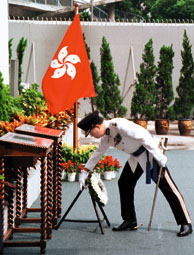 陴N安在致悼辭及默哀兩分鐘後,隨即代表警隊在警察總部堅偉樓入口處附近穢顒漪鰫嬰W冊獻上花圈,以示哀悼。香港輔助警察總監周湛樵、警隊各單位及警務人員協會的代表,亦分別在紀念冊前獻上花圈。