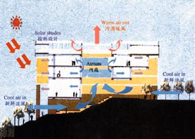 環保大廈的自然通風及採光設計。