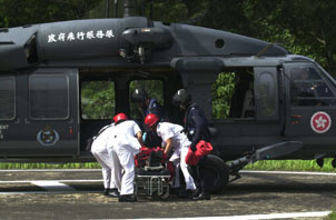 墮山受傷的男子由直升機送往醫院接受治療。
