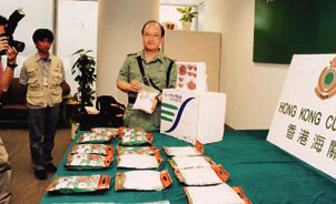 【本報訊】機場海關人員日前抽查一批寄往日本東京的香港郵政特快專遞郵包時,緝獲約八公斤「甲基苯丙胺鹽酸鹽」俗稱「冰」的毒品,該批毒品在香港的零售價約值港幣三百六十萬元。若成弘蝴B至日本,當地零售價將會高達港幣六千四百八十萬,大約九億日圓,接近十八倍的豐厚利潤,亦是海關首次在特快專遞寄出本港郵包內,破獲毒販利用郵包運毒的案件。