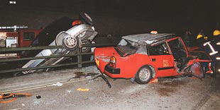 [2000-11-05] 炮彈飛車迎頭壓毀的士 放大圖片