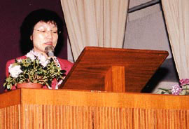 麥淑卿校長在校友會會員大會中致詞。