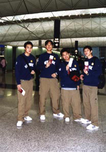 成末簸壞didas亞洲三人籃球賽的香港男隊啟程赴美前合攝。左起:黎耀恩、譚偉洋、翁萬特、潘志豪。