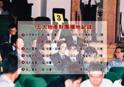 值得一提的是,擁有大量現金的淘大置業亦十分進取地透過拍賣及招標購入三幅地皮,增加樓面儲備達二百卅九萬七千餘方呎,而涉及的地價達三十四億二千六百萬,僅次於新地。至於長實則在拍賣場合購入兩幅地皮,涉資十三億六千餘萬,恆地則投得西灣河地王,涉資二十四億三千萬。