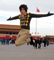 北京目前氣溫是零下三度,十分寒冷,幸好東東也有帶備預寒衣服出發,並且趁有空檔,到天安門外遊覽拍照留念,本來東東一個人與數個工作人員遊覽天安門是沒有人發覺,可是後來因為大家貪玩,叫東東跳起拍照,結果一跳之下,遊覽天安門的市民開始認出他是陳曉東,一下子都圍過來要東東簽名拍照,東東幾乎要在天安門開個簽名會,工作人員見情況不對,於是馬上把東東帶走。