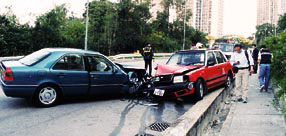 【本報訊】火炭穗禾路昨午發生交通意外,一部平治房車上斜轉彎時越過火位,與的士迎頭相撞,導致三人受傷。