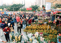 維園年宵市場是全港最大的年宵市場,吸引大批市民光顧。圖為熱鬧的維園花市一角。