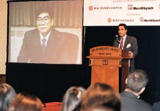 中國海洋石油執行董事兼總裁傅成玉在昨日的招股推介視像會議上。