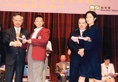 王忠秣(左)與張建宗(左三)頒發進步獎予仁濟學生。