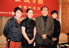導演謝晉與女主角伍宇娟(左二)、伊春德(右一)、關寧(左一)出席記者會。
