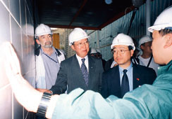 鄭漢鈞、苗學禮與陳鑑林向地盤員工了解利用預製件的可行性。