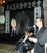 曾蔭培在昨晚的悼念晚會中讚揚殉職警員梁成恩。