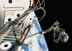 圖為美國宇航員乘著太空穿梭機的機械臂進行太空漫步,在不久的將來,普通人也可身歷其境,美夢成真。