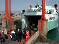 民營「金門快輪」客貨輪九日上午滿載二百九十五名金門民眾自料羅港直航廈門,進行五天四夜的祭祖、旅遊活動。 (中央社)