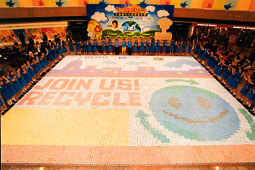 ¡@¦Ó¾TÅø¹Ï¥H¦ÛµMªººñ¡BÂŵ¥ÃC¦â¬°¥D¡A¦Ó¹Ï®×¤¤ªº°ª¼Ó¤j·H¬O¥Nªí»´ä¡A¥t¥~¥ç¦³¤@Ó¥Nªí´`Àô¦A¥Îªº¤T¨¤§Î¼Ð»x¡A¦A¥[¤W¦a²y¤§¤Íªº·|À²¤ÎÀô«O¤f¸¹¡uJoin us!Recycle¡v¡A§Æ±æ¦V¥«¥Á«Å´Àô«O°T®§¡C