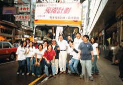 鄭耀棠、陳婉嫻和王國興等人連同一班義工昨日乘花車為「飛躍計劃」作宣傳。
