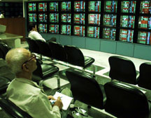 台北市一家證券行內,股民對連連下跌的股價,已見麻木 (中新社)