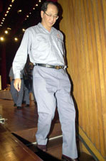 剛卸任的中鋼公司董事長王鐘渝三十一日在股東常會後,步出會場。王鐘渝仍留任中鋼公司董事及榮譽顧問。(中央社傳真)