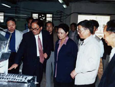 科技部副部長鄧楠視察昆明貴金屬研究所催化劑生產線。 (供圖:昆貴)