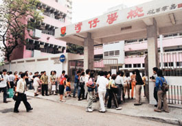 清早八點多,上百名家長來到灣仔學校收發點排隊,急待知道自己子女派位的結果。