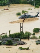 上水天平山村豪雨後盡成澤國,村民被困,飛行服務隊出動直升機救出被困群眾。