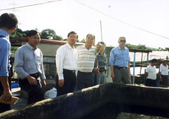 民建聯立法會議員譚耀宗聯同元朗區議會副主席梁志祥、民建聯元朗支部主席顏錦全昨天到元朗新田上竹園視察水浸問題,探訪受影響的村民及魚場場主,聽取他們的申訴。