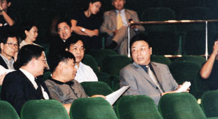 深圳市國土規劃局副局長李加林(右)與深圳市房地產領導在港拍賣場取經。