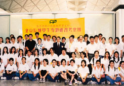 教育署署長張建宗授旗後與代表團拍照留念。