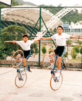 余學而(右)以花式單車「直踩」入港大醫學院。