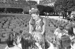 熏衣草芳香溢巴黎。圖為普羅旺斯服飾打扮的「熏衣草花仙子」在向一群兒童介紹熏衣草。(新華社記者李根興攝)