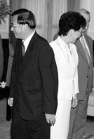 陳水扁、呂秀蓮十五日會見諾貝爾獎得主,兩人之間的互動令人注目。(中央社)