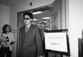 曾權邦(戴墨鏡者)因沒有適當處理危險藥物的紀錄,被醫委會除牌兩個月。