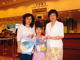 【本報訊】今年八歲的盧苑彤,日前與媽媽一同前往香港中央圖書館,幸運地成為第二百萬名進入圖書館的讀者。中央圖書館總館長脫新範除親自歡迎她們外,更頒贈了一份紀念品給盧苑彤,令她開心不已。中央圖書館自啟用了三個多月以來,一直深受市民歡迎,平均每日使用人次高達一萬七千人。