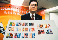 蔣任宏亦公佈了二○○二年的郵票發行計劃。除了於明年一月陸續推出多本具紀念價值的珍貴郵票冊外;亦會在明年六月首次印製介紹香港名勝及已包括空郵費的風景卡,幫助向海外推廣旅遊業。此外,該署明年所推出多款的郵票及小型張,內容涵蓋了藝術、自然景物、數碼科技等,將香港生活的精粹濃縮於小小的郵票內;並利用不同的印刷方法,使郵票出現不同的特色。雖然上述的新設計會令郵票製作成本輕微上升,不過由於郵寄收費與郵票成本並無掛鉤,故與明年四月增加郵費的措施,並無關係。