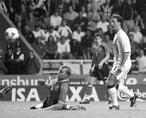 英格蘭的科拿(右)射入第二球。 (美聯社)