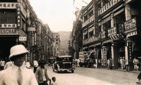 圖二:一九三○年代的明信片,右方為馬玉山茶樓。左方(即今日萬宜大廈處),可見「中華書局」的招牌。