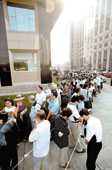 九月十一日,中國首隻開放式基金——「華安創新」基金公開發行。從凌晨起,基金認購網點之一交通銀行北京分行大廈外排起了長隊。(新華社)