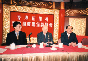 香港新聞界昨舉行國慶籌委會成立大會,中聯辦副主任王鳳超(右)出席並發表講話。