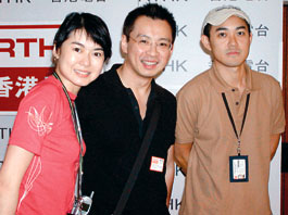 周國豐、鄭兆良、蘭子在錄音室。