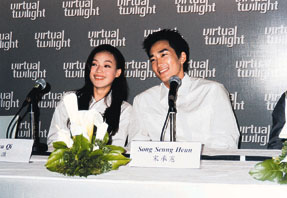 舒淇與韓國男星宋承憲言語上難以溝通,唯有靠眼神交流了。