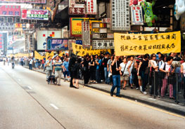 中小型製衣聯盟發動千人遊行,抗議海關及工貿署打擊潛水貨力度過大。
